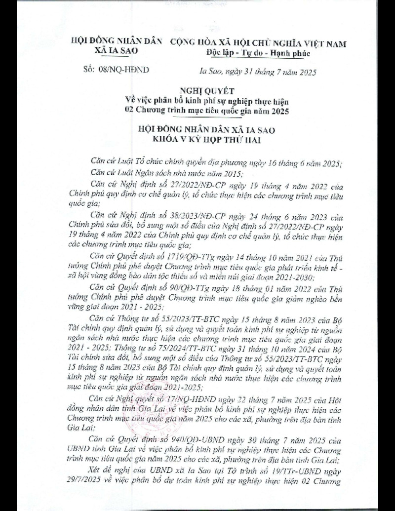 Nghị quyết số 08/NQ-HĐND về phân bổ kinh phí sự nghiệp thực hiện 02 CTMTQG năm 2025 07/08/2025, 14:57:03 - Lượt xem: 5 Tweet Thêm vào danh sách Báo xấu Thông tin tài liệu Nghị quyết số 08/NQ-HĐND về phân bổ kinh phí sự nghiệp thực hiện 02 CTMTQG năm 2025