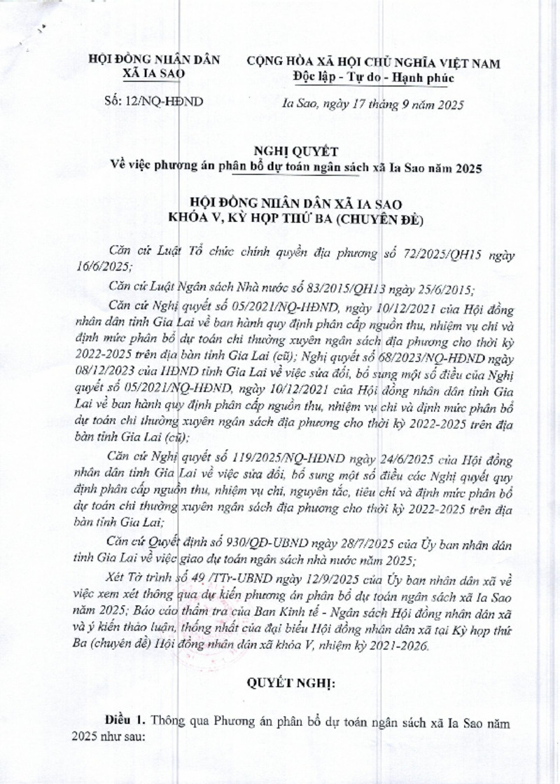 Nghị quyết số 12/NQ-HĐND về phân bổ ngân sách 23/09/2025, 06:03:40 - Lượt xem: 0 Tweet Thêm vào danh sách Báo xấu Thông tin tài liệu Nghị quyết số 12/NQ-HĐND về phân bổ ngân sách