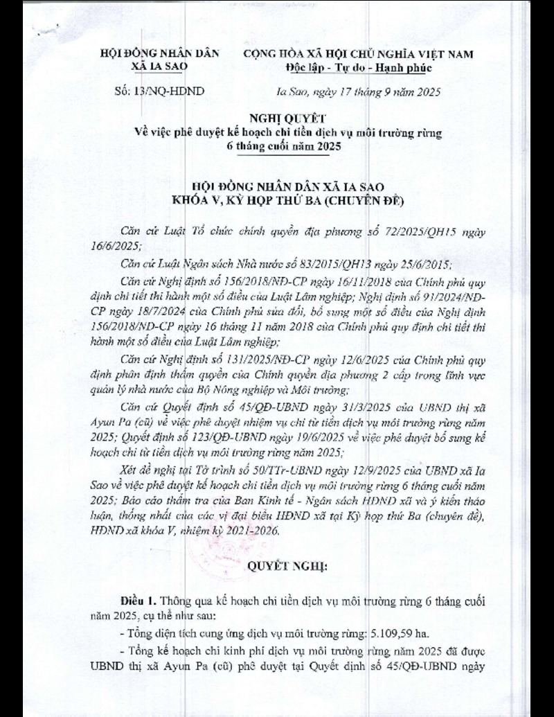 Nghị quyết số 13 về phê duyệt PA chi từ tiền dịch vụ môi trường rừng năm 2025 23/09/2025, 06:04:29 - Lượt xem: 0 Tweet Thêm vào danh sách Báo xấu Thông tin tài liệu Nghị quyết số 13 về phê duyệt PA chi từ tiền dịch vụ môi trường rừng năm 2025
