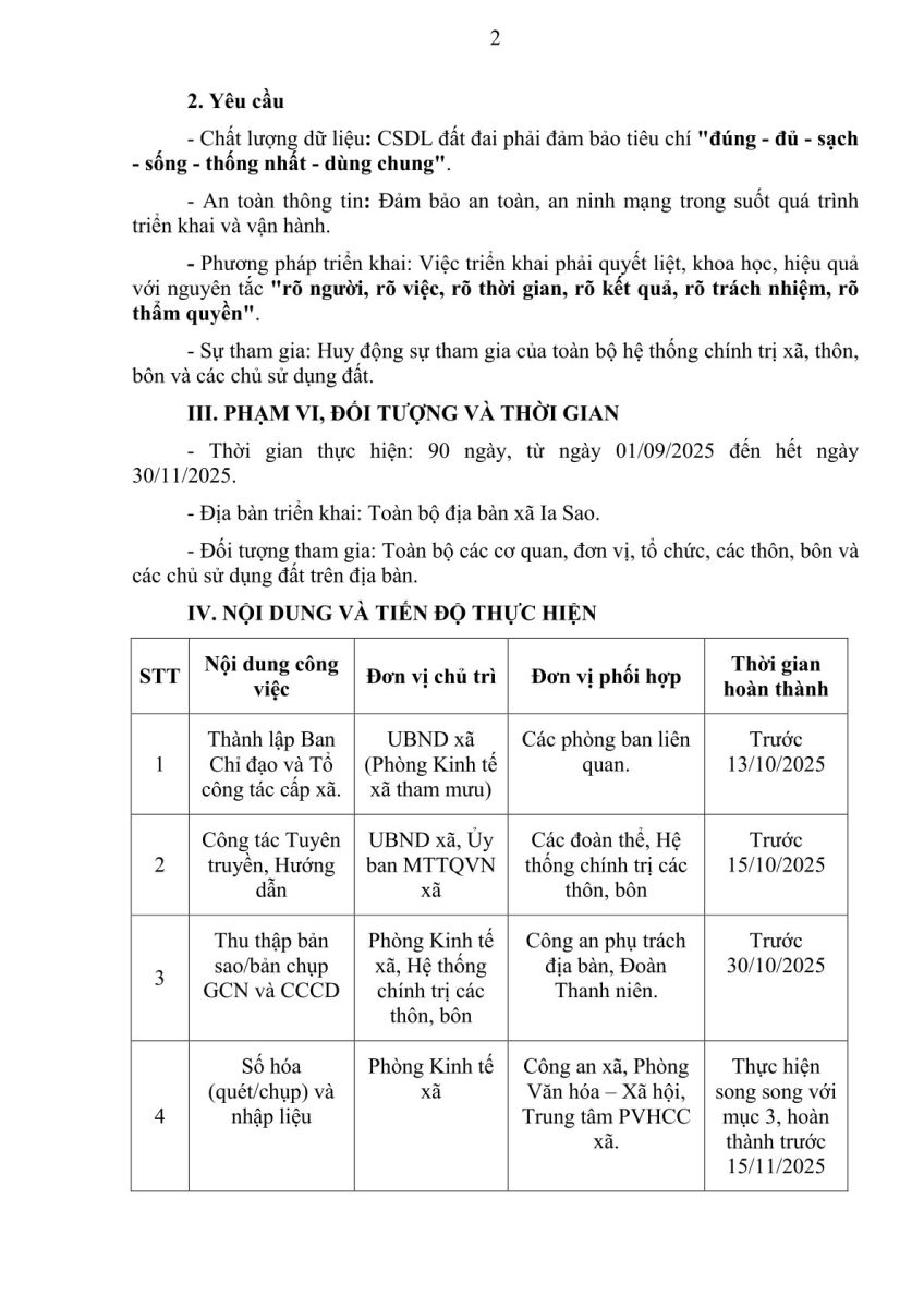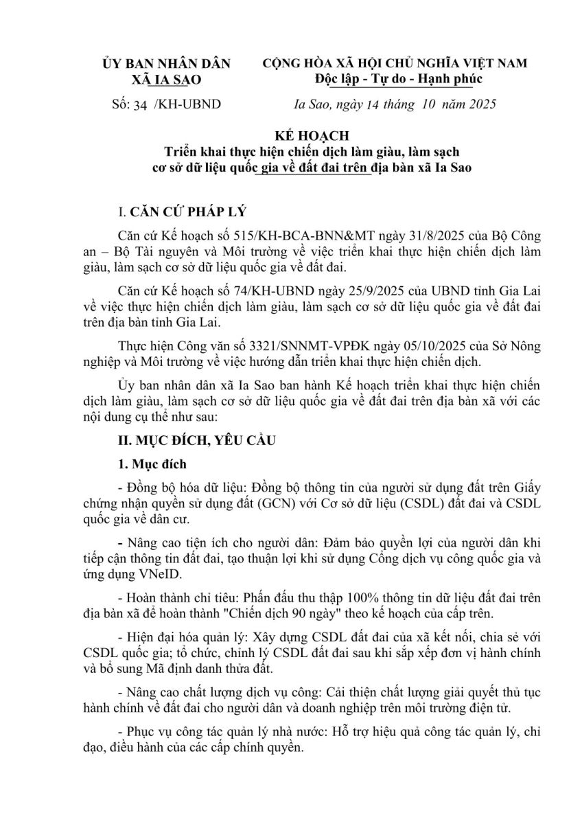 Thứ tư, 15/10/2025 | 10:06 A- A A+ | Kế hoạch triển khai thực hiện chiến dịch làm giàu, làm sạch cơ sở dữ liệu quốc gia về đất đai trên địa bàn xã Ia Sao Chia sẻ Đọc bài Lưu